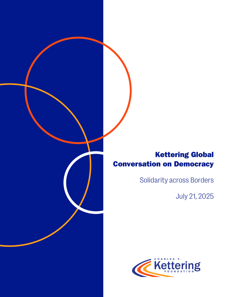 In July 2025, the foundation held its inaugural Kettering Global Conversation on Democracy. The theme, Solidarity across Borders, both framed the event and was a call to action. From the keynote’s call to reclaim democratic imagination to the timely and provocative panel discussions exploring rising autocracy, coalition building, and what it means to build more inclusive democracies, the convening sought to bring the insights of democracy scholars, practitioners, and activists from around the globe to bear on this urgent moment for democracy everywhere.